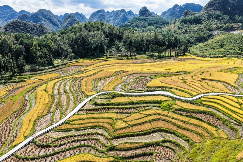近来,贵州省黔南布依族苗族自治州长顺县12万亩水稻喜获丰收。农户们抢抓晴好气候,开镰收割,一派繁忙现象。