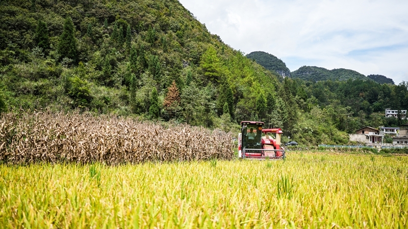 九游会总部:贵州长顺:水稻老练 开镰收割
